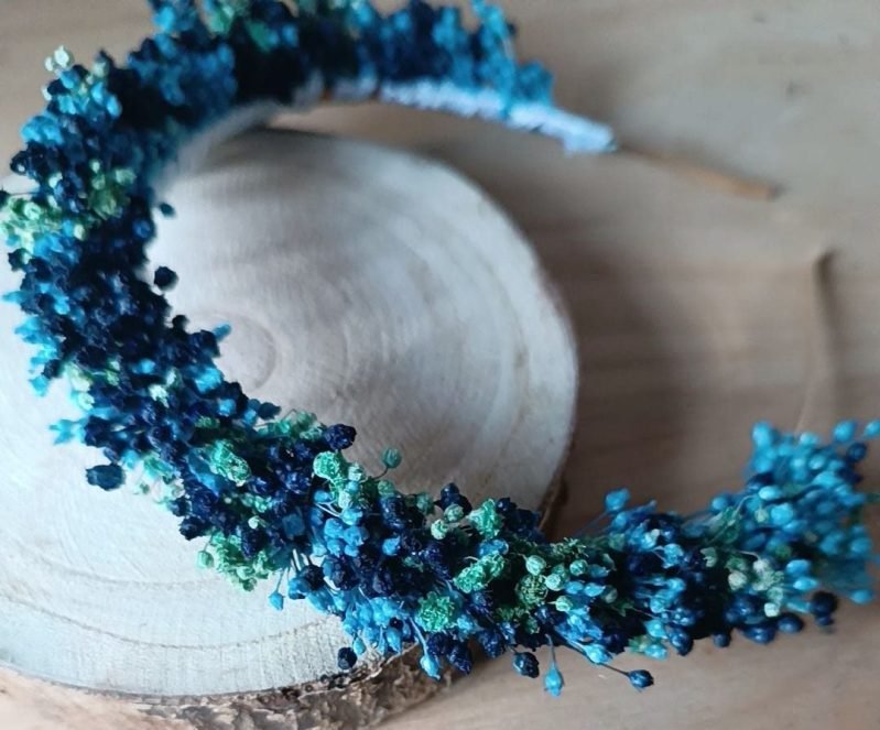 Confeccionada artesanalmente con paniculata y otras flores mini preservadas.