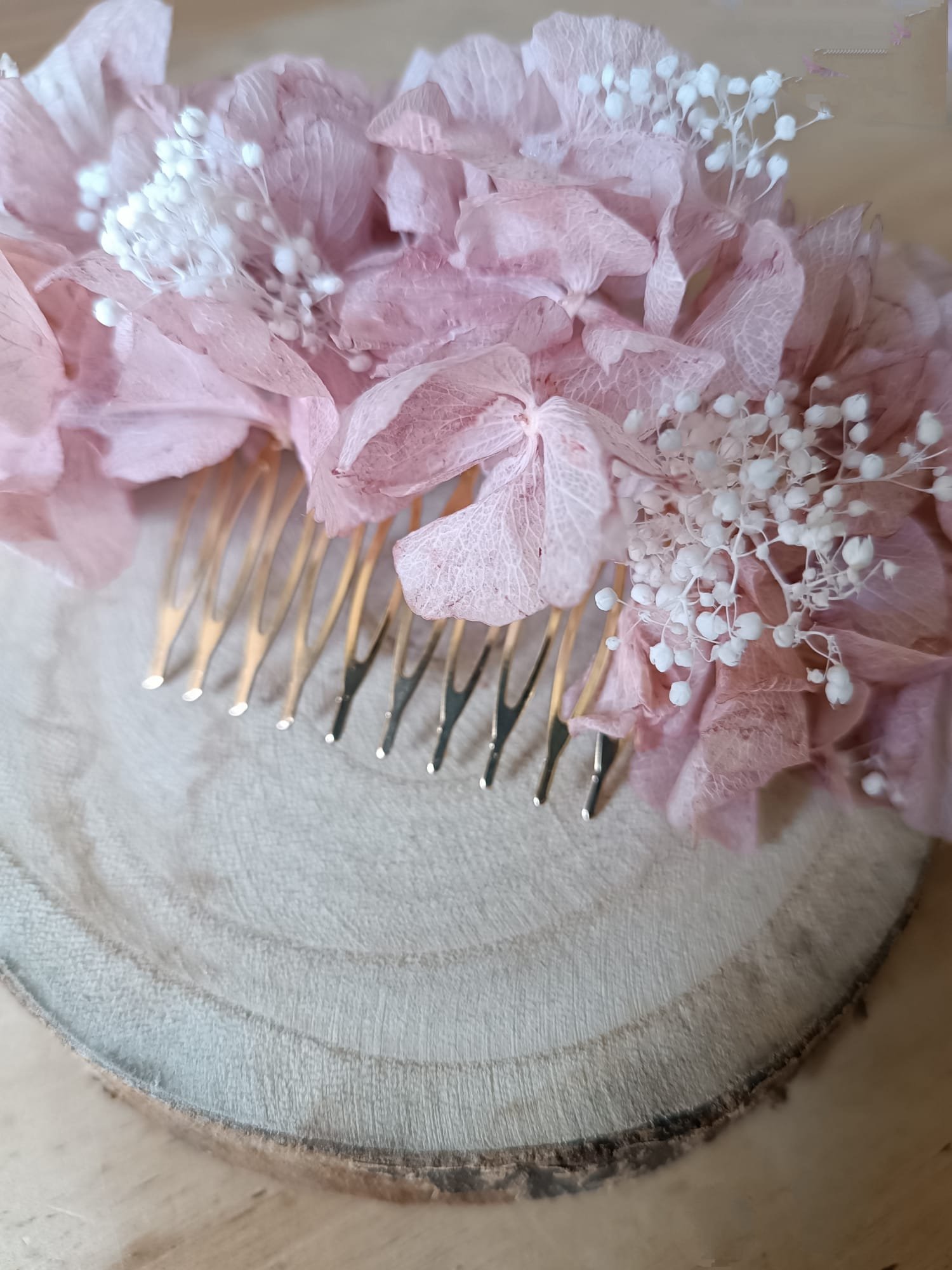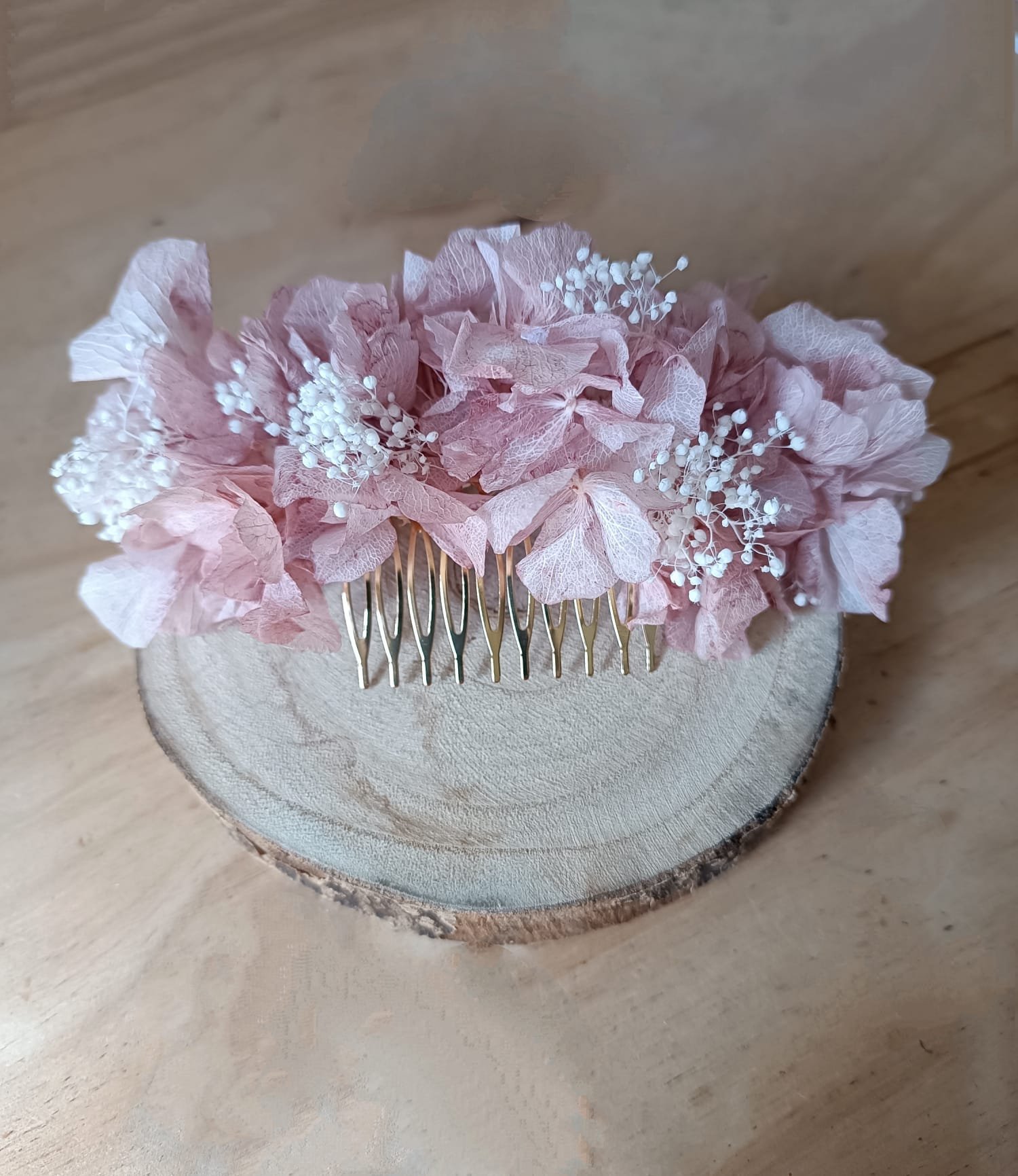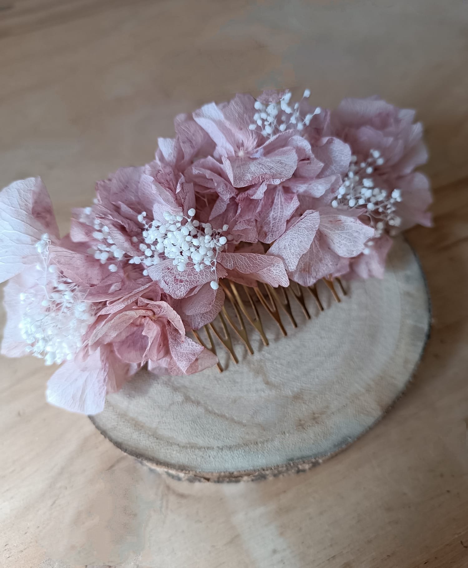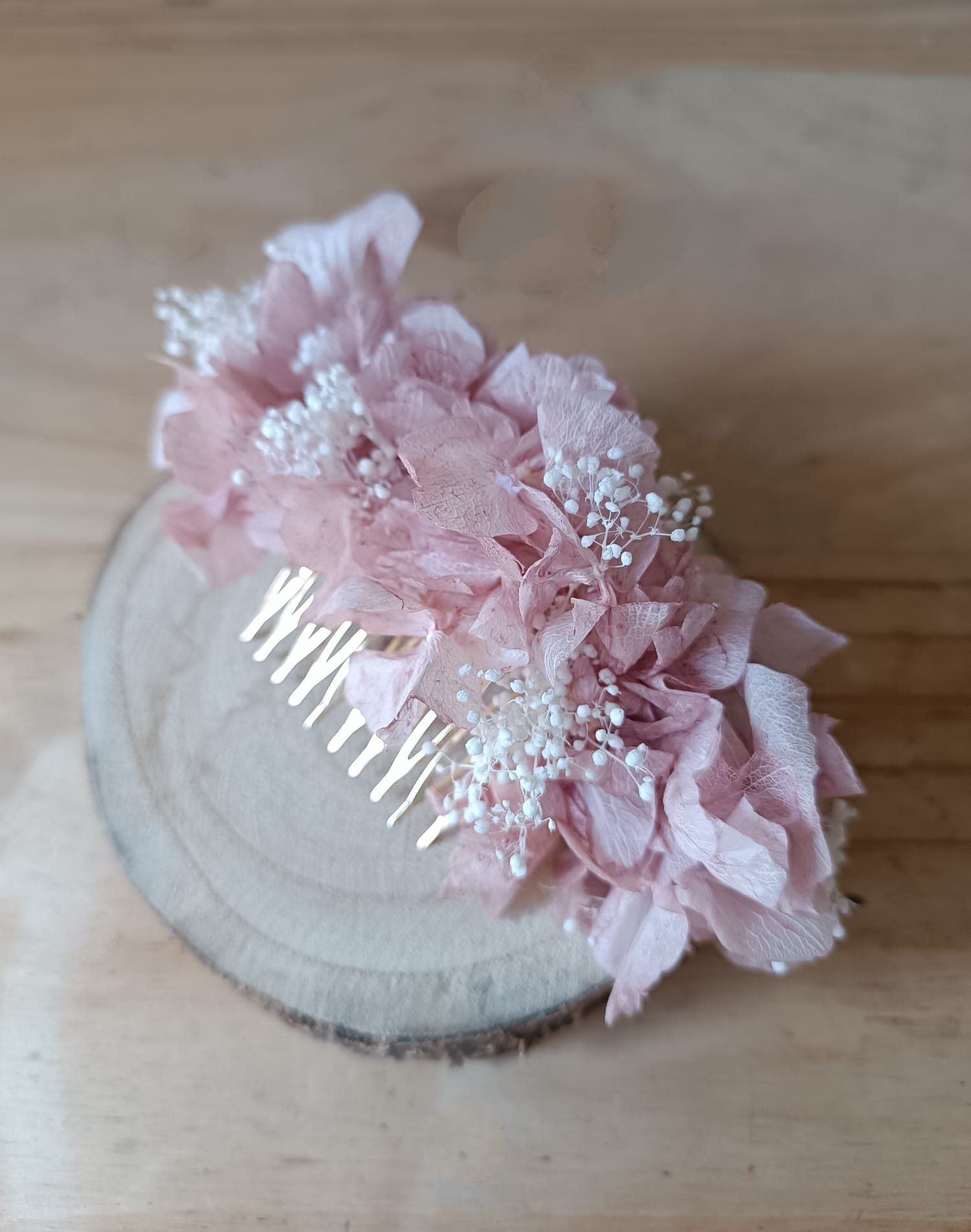 Confeccionado con hortensia preservada.